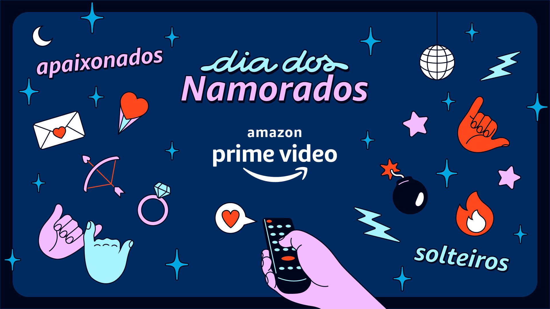 Celebrating Valentine's Day 2021, Prime Video Brazil created a campaign to promote movies and tv shows for both couples and single people. The goal was to create a festive identity for the campaign, to show that you can have fun whether you're in a relationship or not.