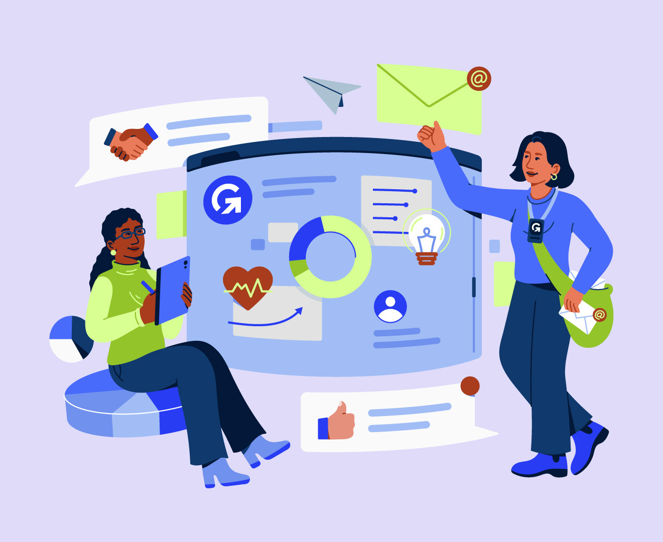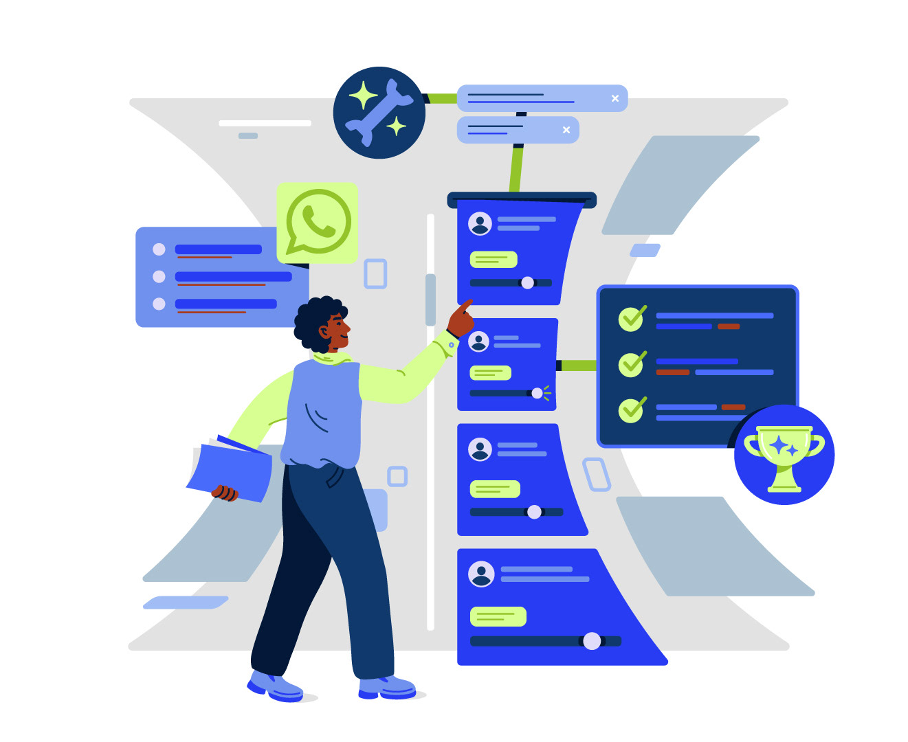 The system is composed of ecosystem illustrations — more complex, humanized, and designed to represent Gupy’s users: HR professionals and candidates. It also includes journey illustrations, used within the platform to guide users through the actions involved in the job application process.
